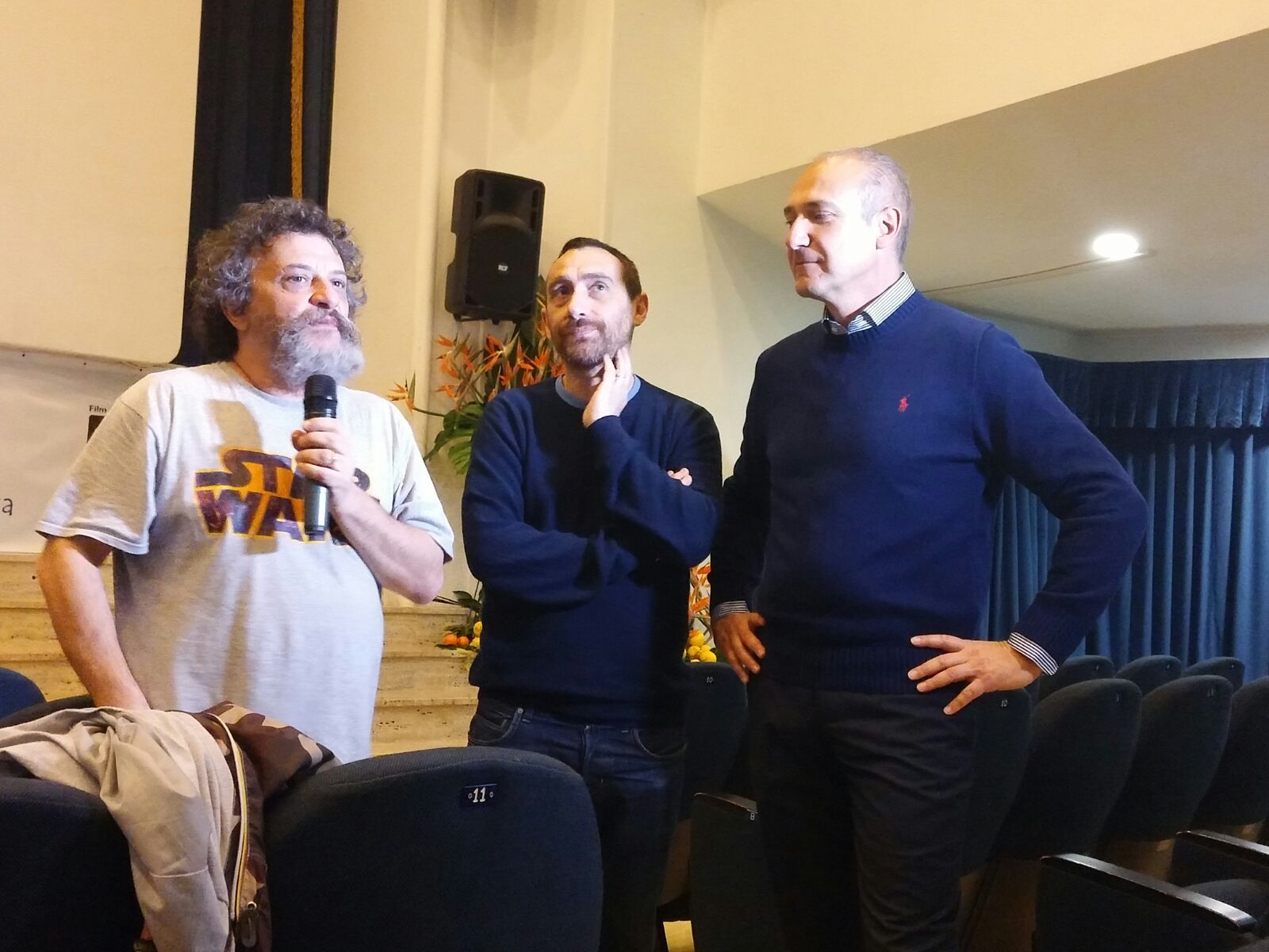 In serata prima della proiezione del film “Song ‘e Napule” con Giampaolo Morelli, Alessandro Roja e Serena Rossi, sono intevenuti i registi del film Manetti Bros che hanno poi atteso la fine del film per incontrare il pubblico e parlare in particolare del loro film e del prossimo, che sarà un film musical poiché gli attori non parleranno solo ma reciteranno anche cantando, e che cominceranno a girare a maggio.