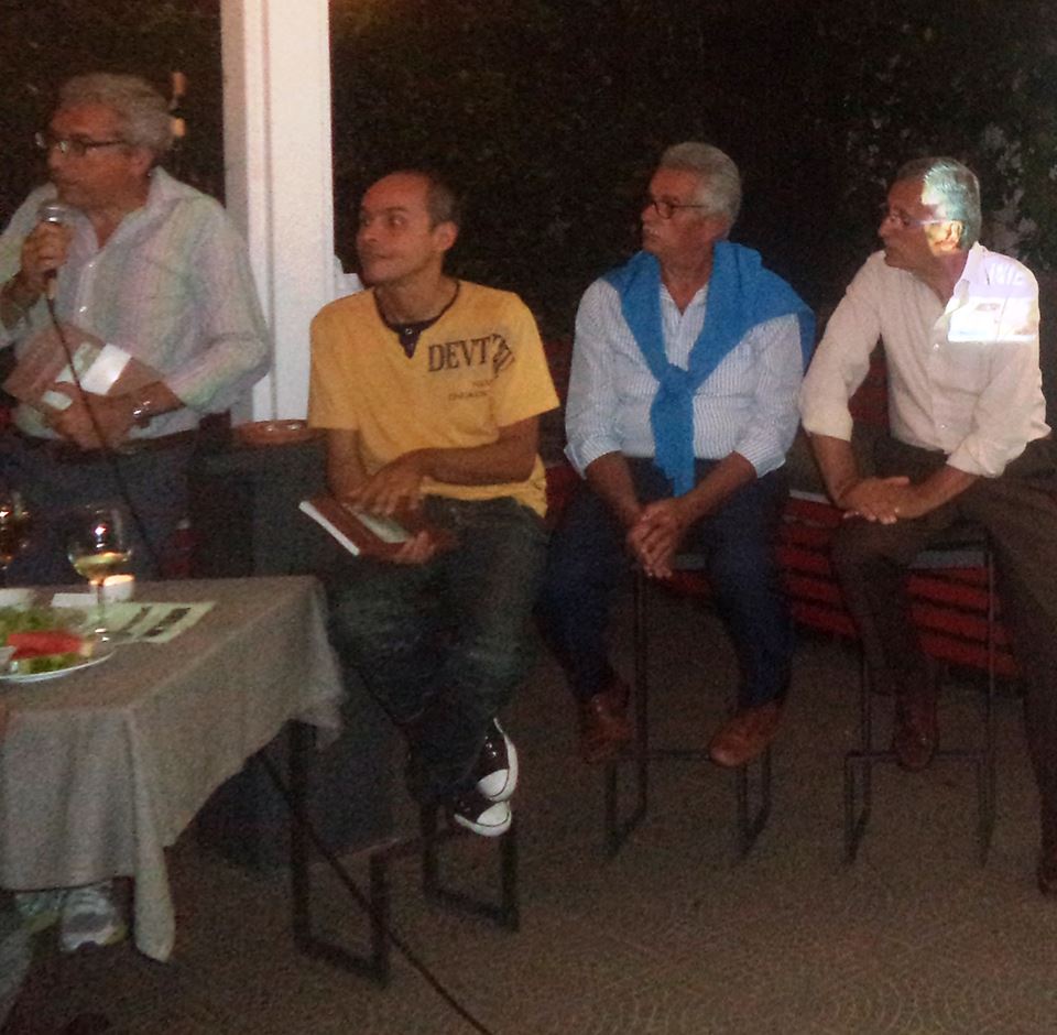 Infine, il 26 agosto Carlo Alfaro si è “spostato” al Bar Syrenuse, dove, con Maria Fausto e Gigi Maresca, e il saluto del vivaista e pittore Claudio Ruoppo, mitico maestro di giardinaggio in Penisola sorrentina, ha presentato il libro di racconti noir “Latte di iena”, di Antonio Mocciola, un lavoro che conduce il lettore ad interrogarsi circa i sentimenti negativi, l’odio, la rabbia, il dolore, la paura, per accettarli, riconoscerli, superarli e vivere finalmente in pace con gli spettri irrisolti della propria coscienza. “Un libro sull’Odio, o sull’Amore che sbatte contro un muro, come una farfalla impazzita”, lo definisce l’autore, napoletano quarantenne, caporedattore de “Il Brigante” per dieci anni, attualmente vice-direttore del magazine “Corriere spettacolo”, già apprezzato autore di “Le vie nascoste”(Gianmarino editore), viaggio tra i borghi scomparsi d’Italia, che in pochi mesi ha “sfondato” il tetto delle tremila copie ed inaugurato la moda del “necroturismo”, ovvero il viaggio nelle città- fantasma del ‘900. “Latte di Iena”(La Quercia ed.) è un classico libro “dark”, i cui personaggi spiega l’autore, agiscono sovrappensiero: “Nessuna motivazione reale sta dietro le loro azioni (quando ci sono), persi in quel limbo in cui non c’è volontà. Come quando lo sguardo si perde a fissare un punto, e si crea quel momento di pura sospensione della coscienza. E se fosse proprio in quegli istanti in cui “non siamo” la verità vera del nostro essere? E se l’amore, e l’odio, non fossero che sentimenti condizionati dalla società, o dalla famiglia, o dalla religione? Una sorta di dovere? In sovrappensiero siamo veri”.